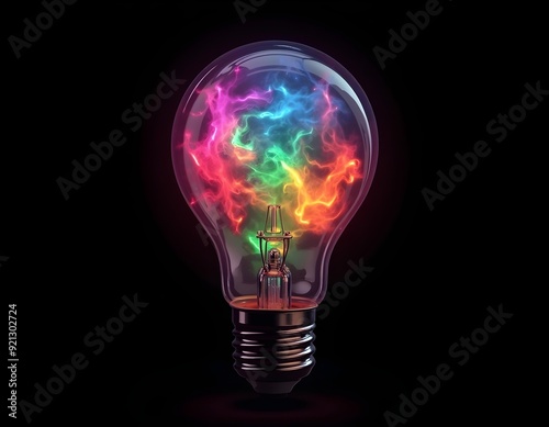 A colorful 3D light bulb filled with swirling colors create with ai