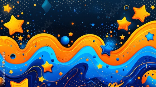 A colorful abstract background with stars and planets in the sky, AI