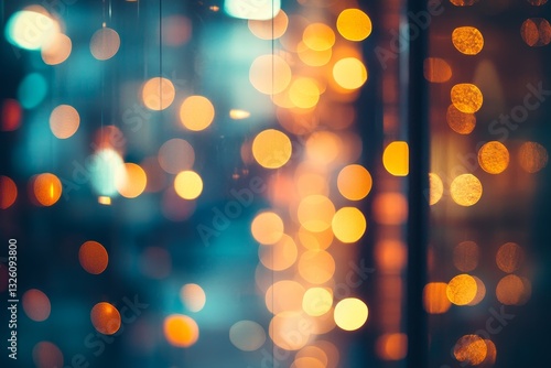 A Colorful Abstract Blur of Out-of-Focus City Lights Seen Through a Glass Window on a Rainy Night