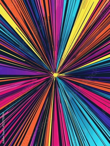 A colorful, abstract painting with a bright yellow star in the center. The painting is full of vibrant colors and has a dynamic, energetic feel to it