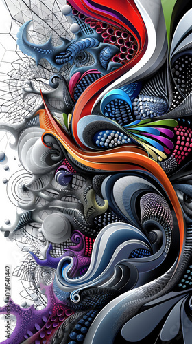 A colorful abstract painting with a lot of different shapes and colors