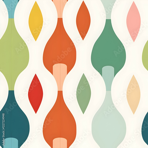 A colorful abstract pattern featuring elongated shapes in various vibrant hues.