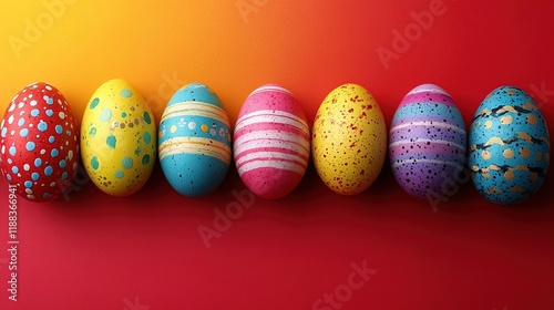A colorful arrangement of decorated Easter eggs against a vibrant background.