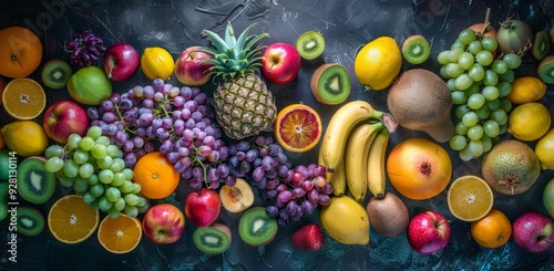 A Colorful Arrangement of Fresh Fruits on a Dark Background