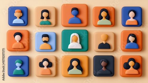 A colorful arrangement of stylized user profiles, showcasing diverse characters in varying shapes and colors against a light background.