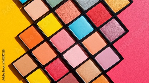 A colorful array of makeup palettes arranged in a diamond shape