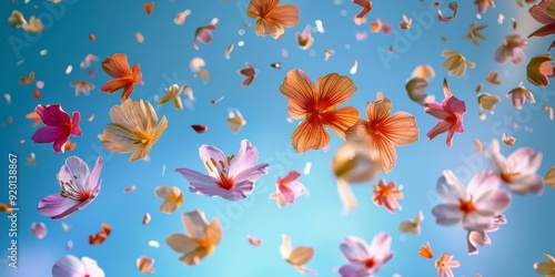 A colorful array of stunning flowers rests beneath a bright blue sky, evoking beauty and tranquility