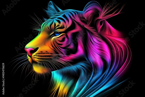 A colorful artistic portrayal of a majestic tiger profile portrait