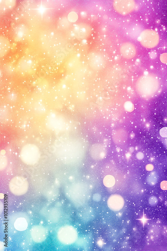 A colorful background with a lot of stars and a rainbow. The background is very bright and colorful, and the stars are scattered throughout the image. Scene is cheerful and lively