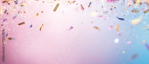 A colorful background with glittery confetti falling from the sky