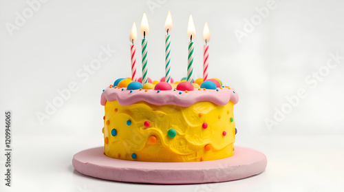 A colorful birthday cake with candles. isolated on white background