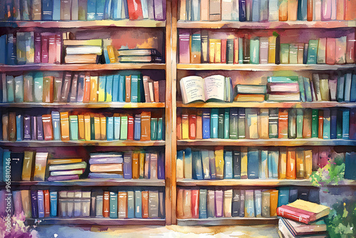 A colorful bookshelf filled with various books, inviting exploration and learning.