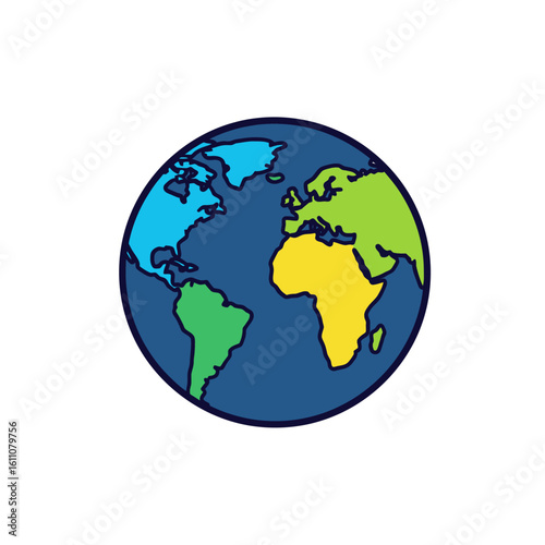 A colorful cartoon illustration of planet Earth, showing the continents of the Americas, Africa, and Europe.