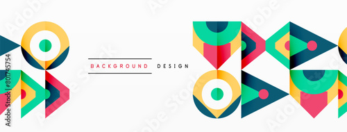 A colorful collection of geometric shapes like triangles, rectangles, circles, and a ball form a vibrant pattern on a white background. Electric blue adds a pop of color to the art