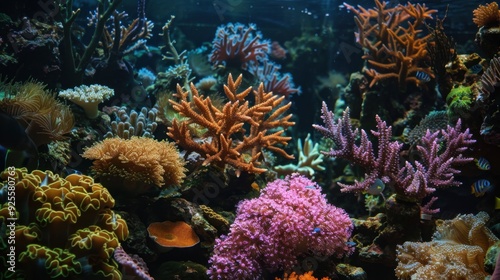 A colorful coral reef ecosystem with a mix of hard and soft corals, showcasing the diversity of reef structures.