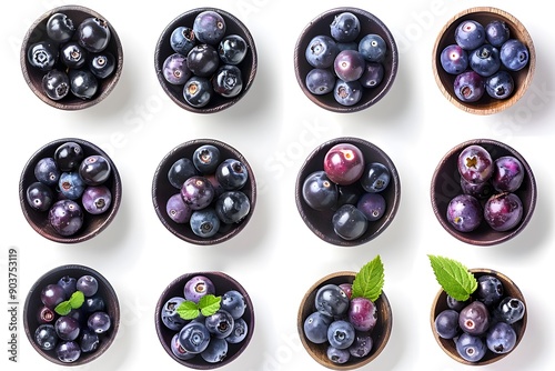 A Colorful Display of Fresh Blueberries in Various Bowls