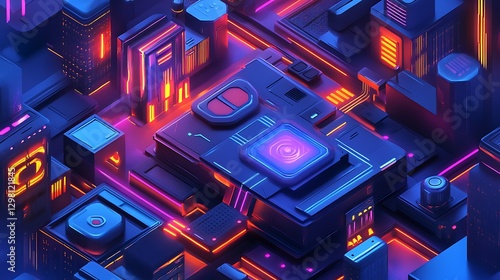 A Colorful Futuristic Digital World with Geometric Shapes and Abstract Designs