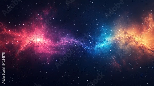 A colorful galaxy with bright stars and nebulae, set against the blackness of space. The vibrant scene offers clear space for text.