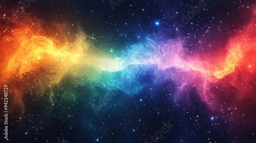 A colorful galaxy with bright stars and nebulae, set against the blackness of space. The vibrant scene offers clear space for text.