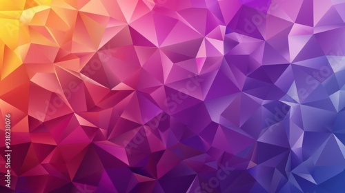A colorful geometric artwork with a gradient of warm and cool tones, featuring interconnected polygons.