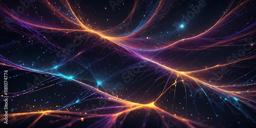 A colorful, glowing, and starry background with a purple line. Background. Abstract. Graphics.