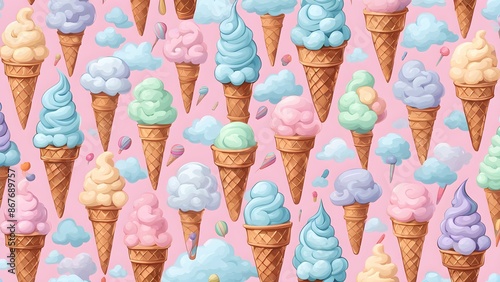 A colorful ice cream pattern with many different flavors of ice cream in various