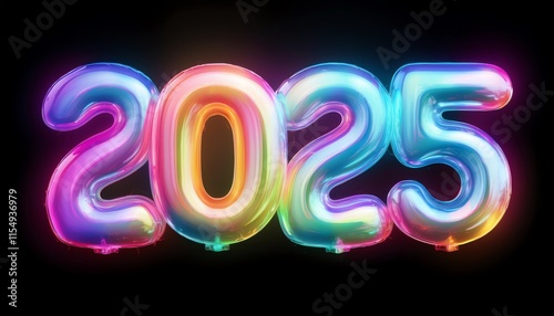 A colorful, illuminated display of the numbers "2025," representing a vibrant celebration or New Year's countdown.