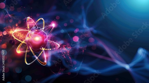 A colorful image of a red and blue atom with a purple nucleus. The image is abstract and has a dreamy, otherworldly feel to it