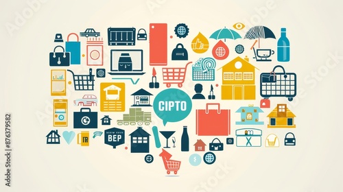 A colorful image of various items such as a laptop, cell phone