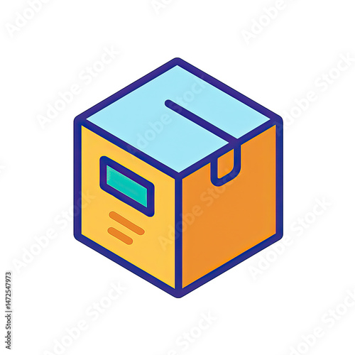 A Colorful Isometric Illustration of a Closed Cardboard Box for Shipping and Delivery Services