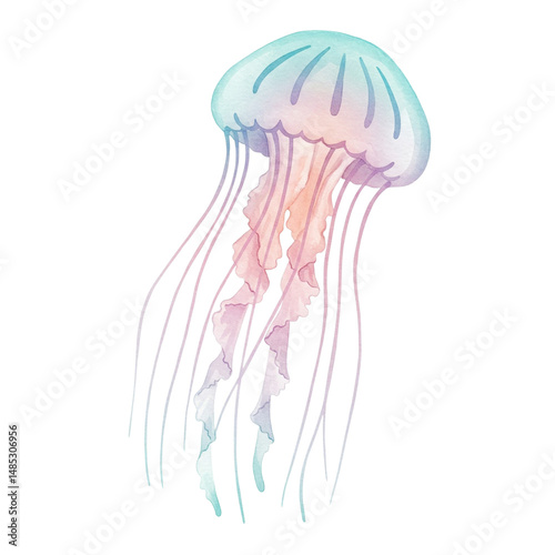 A colorful jellyfish with flowing tentacles and a dome-shaped bell.