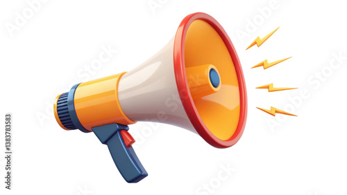 A colorful megaphone with sound waves, symbolizing communication and announcements.