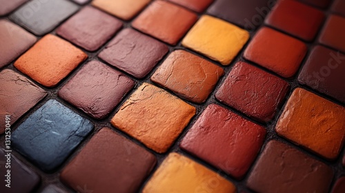 A Colorful Mosaic of Earthy Tones: A Close-Up View of Textured Tiles
