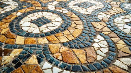A Colorful Mosaic Patterned Stone Pavement Creates Beautiful Circular Designs