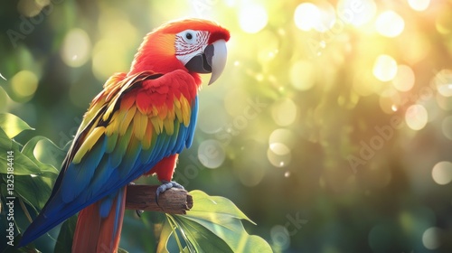 A Colorful Parrot Perched Upon a Branch in Sunlight