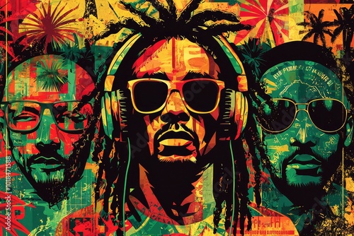 A Colorful Portrait of Three Men Wearing Sunglasses