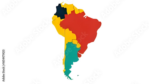 A colorful, simplified map of South America, highlighting various countries with distinct colors.