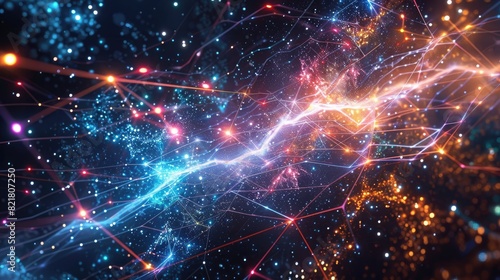 A colorful, starry sky with a bright blue line in the middle. The sky is filled with many different colored stars and the blue line is a bright, glowing line that cuts through the sky