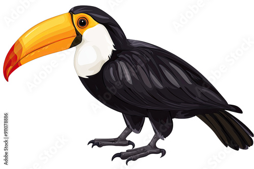 A colorful toucan with a vibrant beak, showcasing its unique features in a whimsical style.