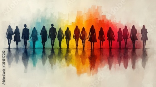 A Colorful Walk Towards Unity: Silhouetted Figures Reflecting a Spectrum of Diversity