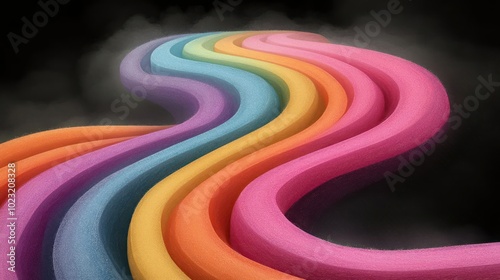 A colorful, wavy design featuring vibrant hues against a dark background.
