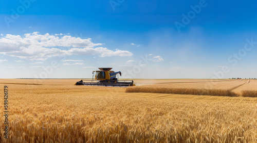 A combine harvester in a wheat field. AI generative.