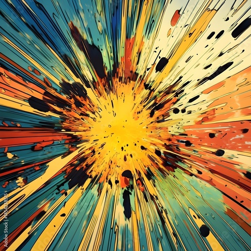A comic book splash panel painting with dynamic motion lines , Comic Book Splash Panel Artwork with Dynamic Motion Lines – Action-Packed Illustration