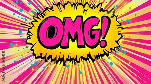 A comic-style speech bubble with the phrase "OMG!" in bright yellow and pink, popping out against a striped background.