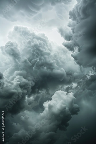 A commercial airliner soaring through a thick layer of clouds, with the sun shining through