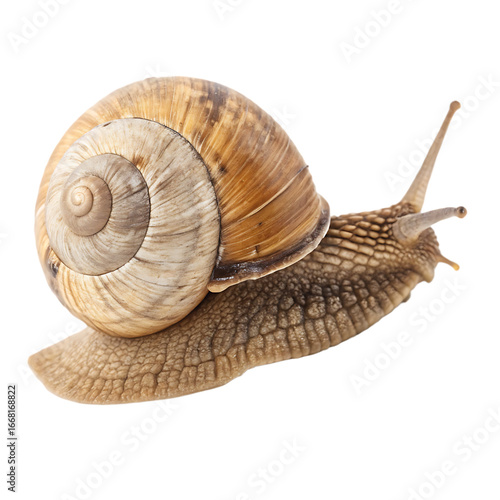 A common snail carrying its spiral shell on its back isolated on a transparent background png