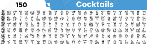 A comprehensive collection of cocktail icons in a minimalist black and white style, perfect for design projects.