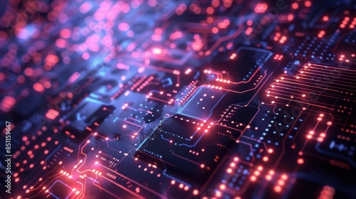 A computer chip with many small red dots on it