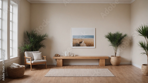 A concept image of a living room interior design mockup template, high-resolution living area with furniture 3d illustration interior rendering.