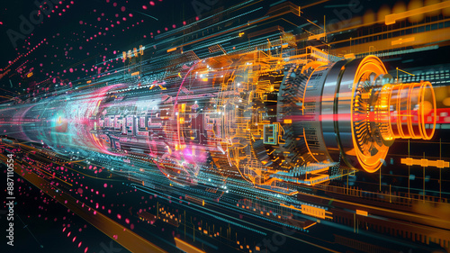 a conceptual image of a generative AI system that takes in various data from across an organization and produces novel insights, conceptual, professional, engine-like.generative ai